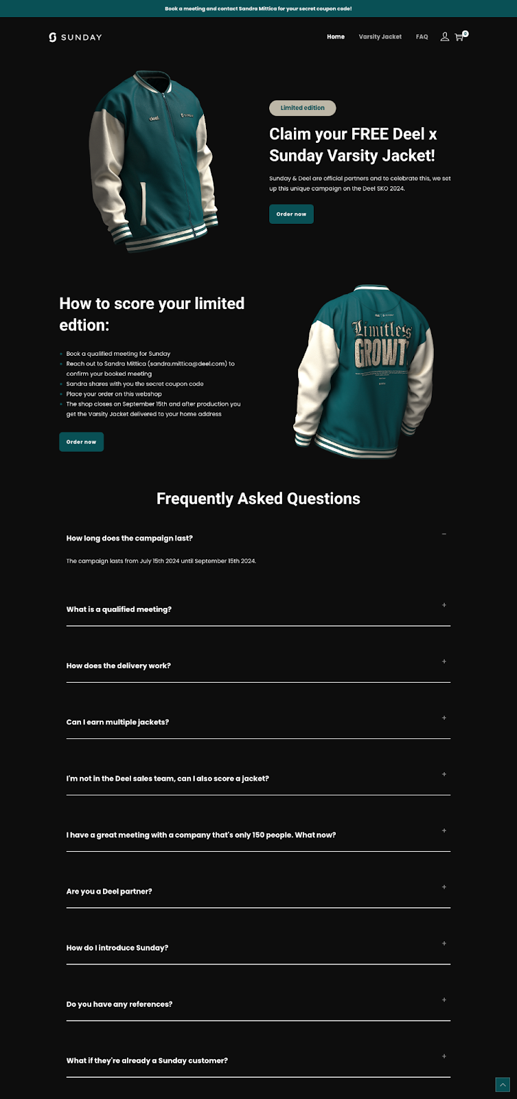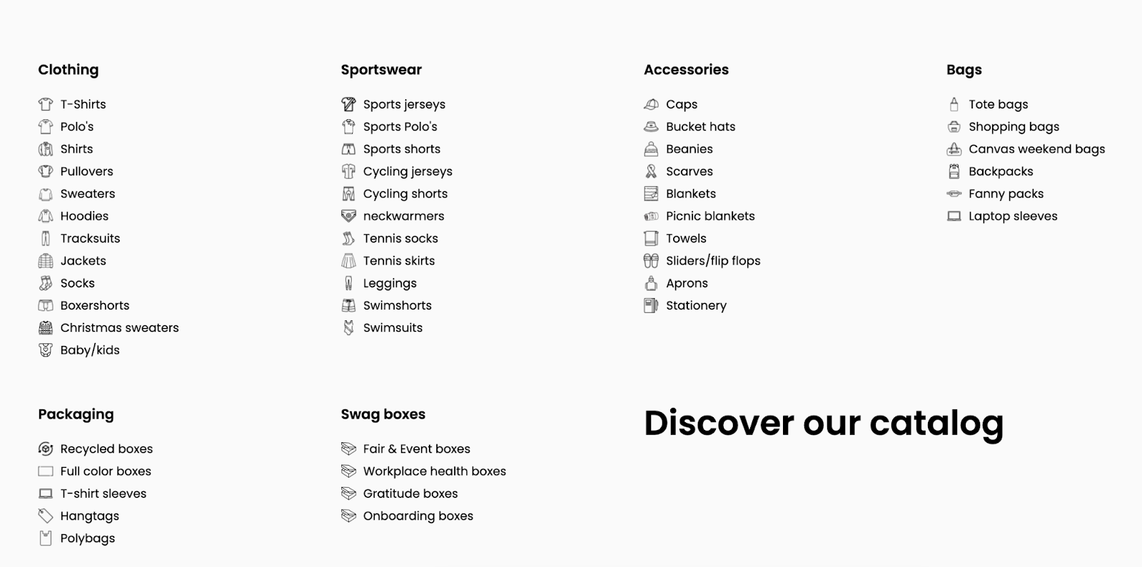 At Sunday, we don’t just deliver products; we deliver experiences that resonate with your audience and reflect the quality and values of your brand. With our comprehensive support, you can be assured that your merchandise will make a lasting impact, helping to strengthen connections with your team, customers, and community. We look forward to partnering with you to bring your vision to life.