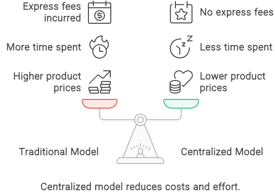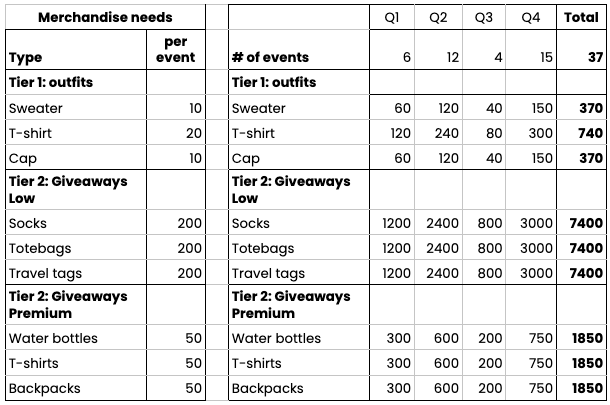 The traditional model of managing merchandise for events involves an ad hoc and often chaotic approach. Different departments order and store their items independently, leading to inefficiencies and added costs. It is way more difficult and expensive to order your merchandise separately for every event with a local supplier in every country than centralizing it. This model saves money in 3 ways: