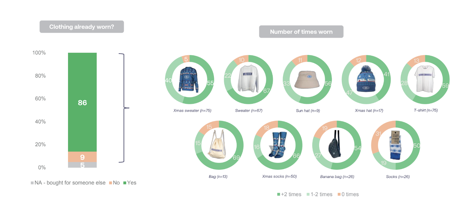 Our scientific study with the University of Brussels and NMBS (National Belgium Railway) revealed that over 86% of recipients regularly wear the merchandise they receive. Moreover, these items spark one to two brand-related conversations every time they are worn, demonstrating the long-term impact of well-designed merchandise on brand awareness and ambassadorship. We went deeper into the campaign and built a strong data driven report on the impact: