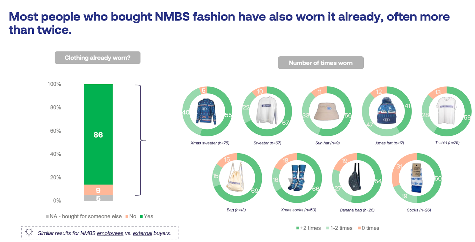 - Positive Impact on Brand Image External receivers of NMBS fashion also reported a more favorable image of the brand, reflected in a higher Net Promoter Score (NPS), indicating a significant scientific impact.