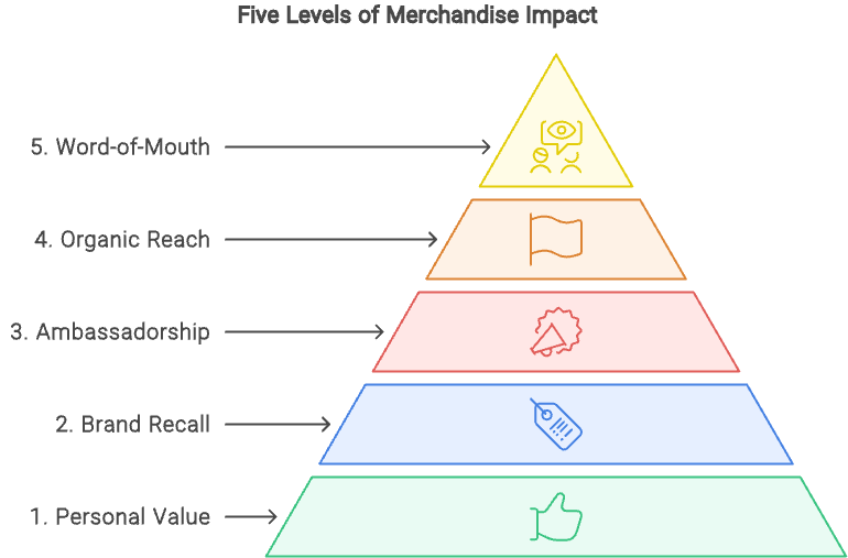 - Ambassadorship: As people use or wear the merchandise, they begin to see themselves as brand ambassadors, strengthening their emotional connection to the brand.
