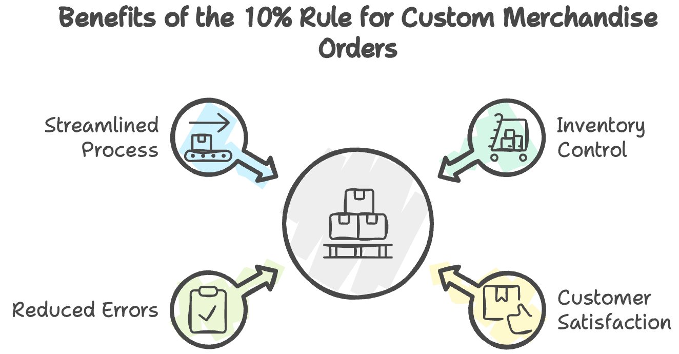 At our company, we take pride in delivering high-quality custom apparel and merchandise with impeccable precision, thoughtful design, vibrant colors, and a logo that represents your brand effectively, while enhancing your overall branding strategy. One of the key practices that enable us to meet and exceed our customers’ expectations is our 10% rule. If you’ve ever wondered why we produce 10% more items than ordered, or how this practice benefits you, read on to learn why the 10% rule is the best thing that ever happened to your custom orders.