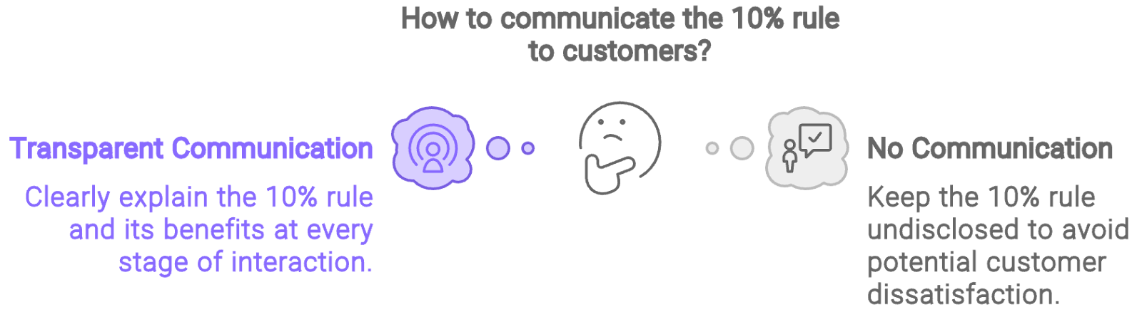 We understand that transparency is crucial. While most of our customers appreciate the 10% rule, it’s essential that they know about it upfront. That’s why we make it a point to communicate this practice at every stage of our interaction-from initial consultations to the final delivery.