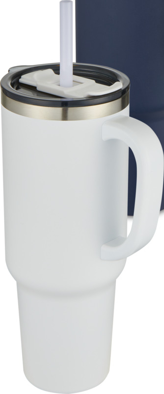 Meet the 1200 ml Double Wall RCS Certified Copper Vacuum Tumbler with Straw, where sustainability and style unite. Crafted from 91% post-consumer recycled stainless steel, this tumbler boasts a double-wall copper insulation that maintains drinks cold for up to 24 hours and hot for about 9 hours, while its durable powder-coated exterior adds flair and resilience. The RCS certification underscores its eco credentials. With its spacious 1.2-litre capacity, slider-lid to prevent spills, a Tritan straw, and a swivel lid that securely holds the straw, it’s built for convenience and longevity.